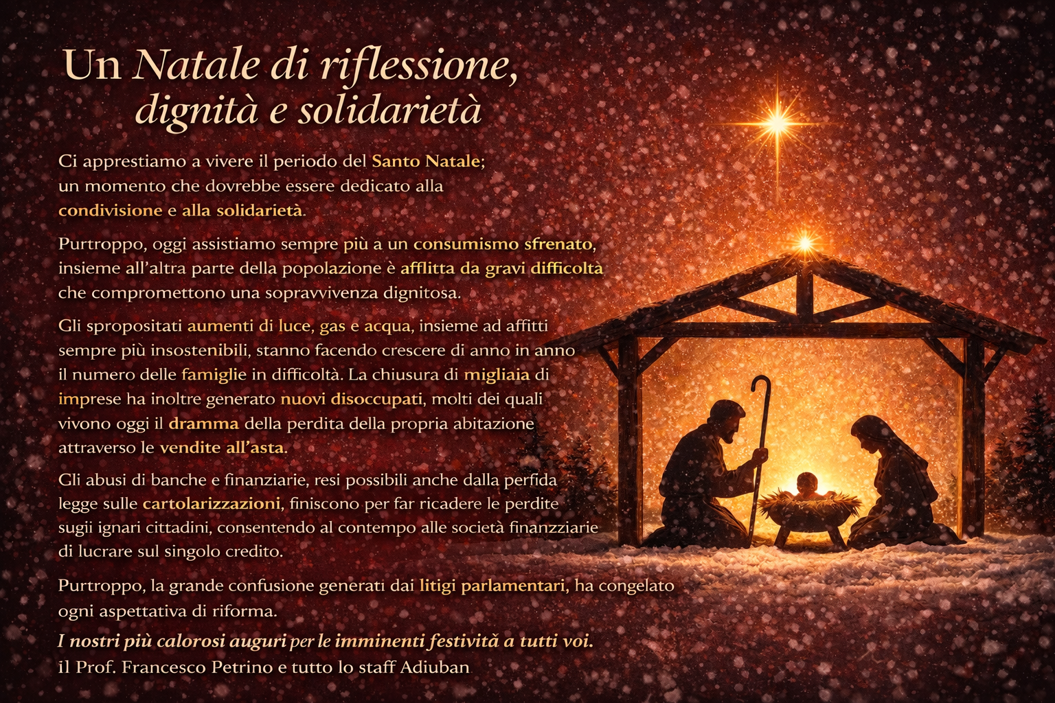Un Natale di riflessione, dignità e solidarietà